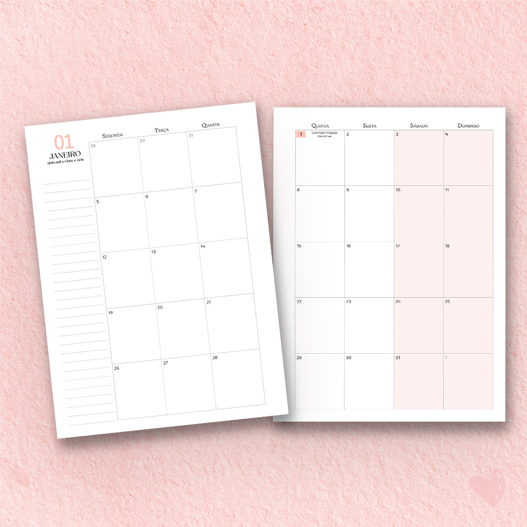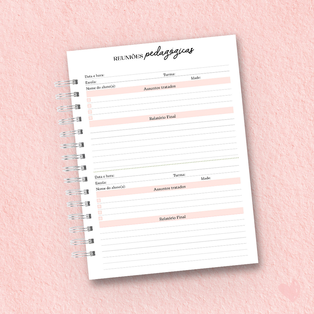 Com espaços pensados para o planejamento pedagógico, este planner para professora ajuda a visualizar semanas, projetos e tarefas em andamento, facilitando a tomada de decisões e o acompanhamento do trabalho ao longo do ano. Tudo em um só lugar, de forma intuitiva e funcional.