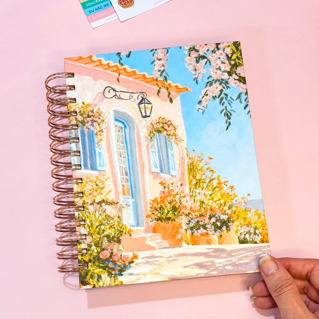 A capa “Amanhecer”  – da Coleção Doce & Fresco do Planner Realize 2026 – traduz a alma da nossa coleção: a calma dourada de um novo dia que começa, com luz entrando pelas janelas, flores desabrochando e o sentimento de que a vida é bonita nos detalhes.