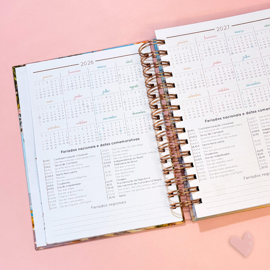 Com páginas pensadas para quem ama planejar e se expressar, o Planner Realize 2026 ajuda a equilibrar compromissos, metas e autocuidado. É mais que um planner: é um refúgio de pausa e inspiração entre os dias corridos.